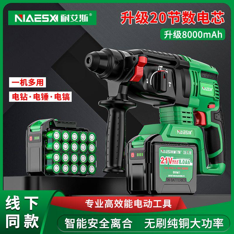 耐艾斯充电轻型电锤20节电池无刷纯铜锂电多功能电镐冲击电凿两用